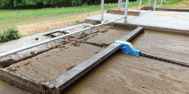 Strangkoline slædeskraber kører under spalterne og fører møget hen til fortanken. En stabil og robust løsning.