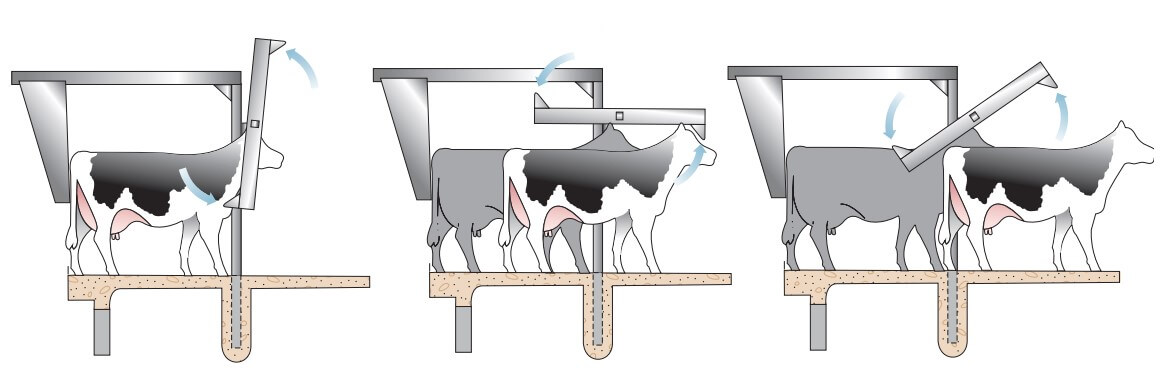 Exit Reel-koncept: BouMatics parallelle XpressWay malkestalde er alle udstyret med Exit Reel; denne roterende bom tillader hurtigere ko-trafik. Den roterer glat for at gøre det lettere for køerne at lære. Ved afslutningen af malkningen sikrer Exit Reel, at køerne hurtigt forlader malkestalden, så den næste gruppe kan komme ind med det samme.
